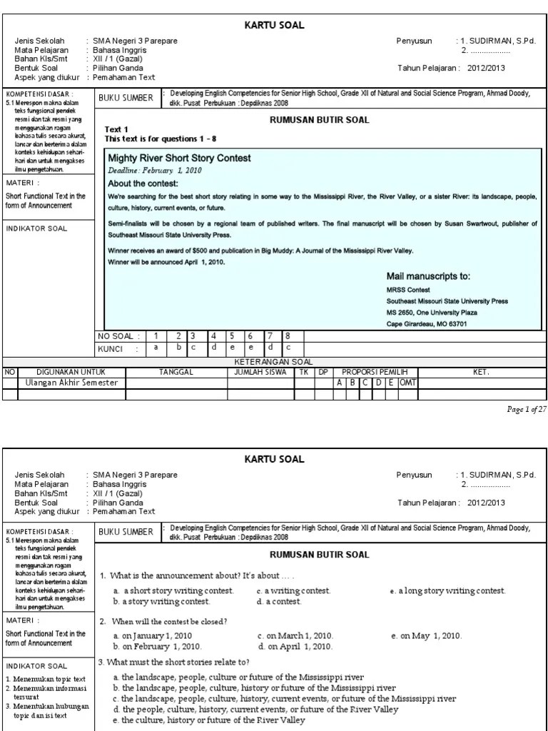 Kisi kisi soal bahasa inggris sma semester ganjil kelas xi pdf.